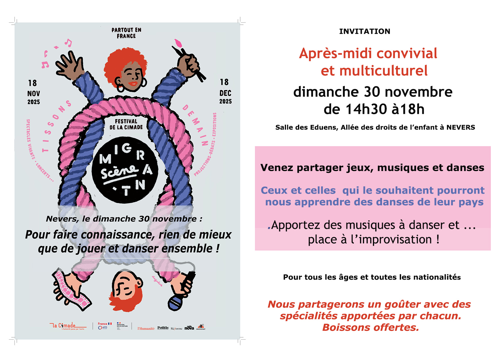 D’ici ou d’ailleurs, venez partager un moment, jouer, découvrir musiques et danses trad’ d’ici et d’ailleurs, partager vos plats au goûter…